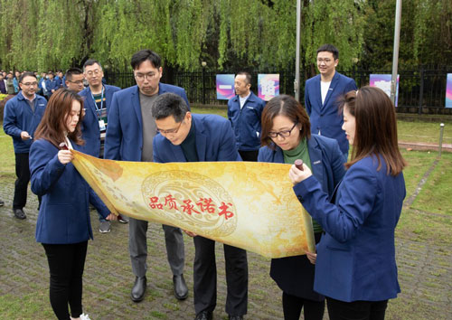 公司高階管理層在升旗儀式上帶頭簽署品質(zhì)承諾書,以此正式拉開了品質(zhì)月活動的序幕。
