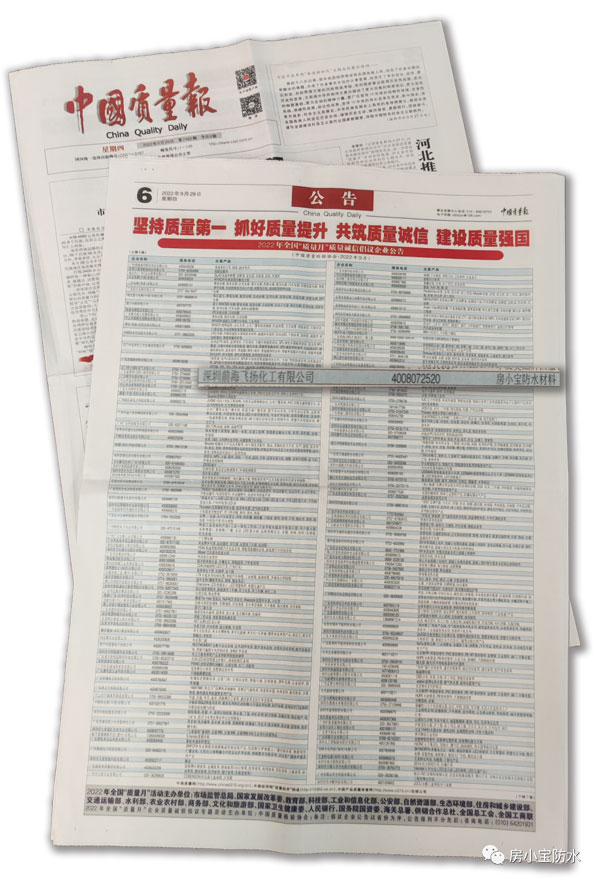 2022年全國(guó)“質(zhì)量月”企業(yè)質(zhì)量誠(chéng)信倡議活動(dòng)公告一經(jīng)發(fā)布,中國(guó)質(zhì)量網(wǎng)、中國(guó)消費(fèi)網(wǎng)、中國(guó)經(jīng)濟(jì)網(wǎng)等紛紛報(bào)道,房小寶防水以優(yōu)秀的產(chǎn)品品質(zhì)從眾多優(yōu)秀企業(yè)中脫穎而出!