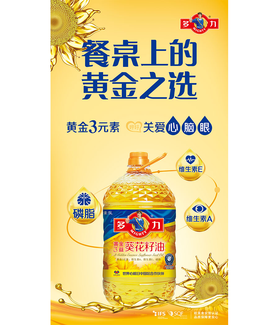 佳格集團以健康營養(yǎng)的“多力”葵花籽油為起點切入食用油市場,深耕市場20年后,佳格已擁有現(xiàn)代化的研發(fā)中心、支持全國的內(nèi)蒙、太倉及廈門三大生產(chǎn)基地,以及遍布各地的業(yè)務(wù)網(wǎng)點。截至目前,“多力”食用油系列涵蓋葵花籽油、菜籽油、壓榨玉米油等多款產(chǎn)品,以其獨有的7重精煉技術(shù)、享譽國際的品質(zhì)標(biāo)準(zhǔn)以及倡導(dǎo)國人健康的品牌理念,深得廣大消費者信賴并成為中國食用油市場領(lǐng)導(dǎo)品牌。