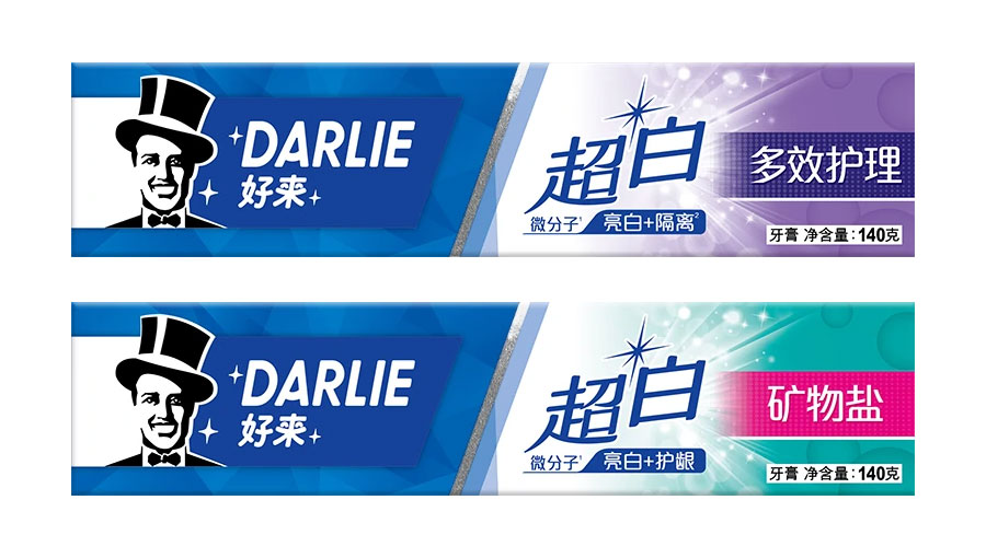 目前DARLIE好來牙膏共有數(shù)十個(gè)品種、多種規(guī)格(18g-250g),其中銷往中國大陸市場(chǎng)包括經(jīng)典的雙重薄荷系列、茶倍健系列、超白系列、專研護(hù)齦系列、抗敏感系列、透心爽系列,兒童牙膏系列及新增了白.酵素系列和星耀白系列等20個(gè)品種,另外還有多個(gè)品種同時(shí)銷往新加坡、馬來西亞、泰國、中國香港和中國臺(tái)灣等市場(chǎng)。