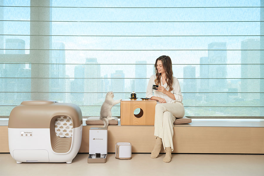 主要產(chǎn)品:PetSnowy糯雪智能全自動(dòng)貓砂盆、烘干箱、智能飲水機(jī)、智能喂食器、空氣凈化器、儲(chǔ)糧桶等多品類寵物智能用品