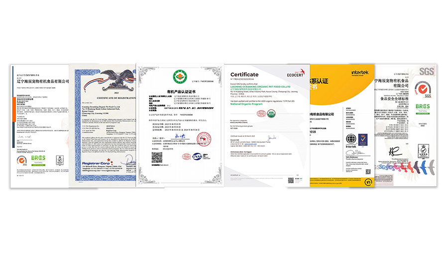 海辰有機擁有多項權(quán)威體系認證,如中國國標有機寵物食品認證、美國NOP有機寵物食品認證、美國FDA認證、BRC全球食品標準安全認證、ISO9001質(zhì)量管理體系認證、ISO24001環(huán)境管理體系認證、ISO45001職業(yè)健康安全管理體系認證和ISO22000食品安全管理體系認證等。同時,該公司還榮獲了遼寧省省級企業(yè)技術(shù)中心、遼寧省高新技術(shù)企業(yè)、遼寧省科技型中小企業(yè)、遼寧省創(chuàng)新型中小企業(yè)、遼寧省專精特新中小企業(yè)、遼寧省瞪羚企業(yè)、遼寧省省級數(shù)字化車間、遼寧省5G全連接工廠試點示范項目以及2023年度省級綠色工廠等多個榮譽稱號。