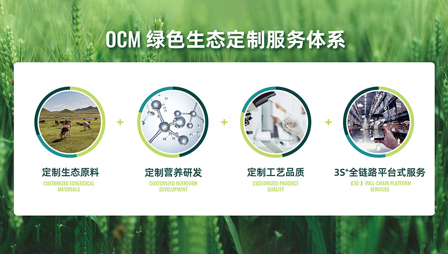 OCM綠色生態(tài)定制服務(wù)體系以品牌客戶的市場人群、寵物營養(yǎng)、產(chǎn)品功能三大需求為根本,為客戶提供包含“定制生態(tài)原料、定制營養(yǎng)研發(fā)、定制工藝品質(zhì)、3S+全鏈路平臺式服務(wù)”在內(nèi)的三位一體生態(tài)定制化服務(wù),旨在為品牌賦予可持續(xù)可增長的有機生命力。其中,定制生態(tài)原料體現(xiàn)在依托北緯41°世界黃金農(nóng)牧帶、精選全球五大核心產(chǎn)區(qū)天然食材、嚴選全資質(zhì)人食級品牌供應(yīng)商以及實施213項動態(tài)監(jiān)測檢控;定制營養(yǎng)研發(fā)則憑借20年寵物營養(yǎng)健康大數(shù)據(jù)、獨有寵物有機健康UP體系、產(chǎn)學(xué)研企深度聯(lián)動、行業(yè)領(lǐng)先的科創(chuàng)研究室以及全流程數(shù)據(jù)評估閉環(huán)系統(tǒng)來實現(xiàn);定制工藝品質(zhì)依靠有機體系全鏈路高標準生產(chǎn)、10萬噸級全品類寵食制造能力以及5G數(shù)字級工廠智能加工技術(shù)來保障;3S+全鏈路平臺式服務(wù)則涵蓋需求研發(fā)協(xié)同、生產(chǎn)定制協(xié)同和市場跟進協(xié)同。