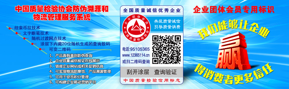 • 全國(guó)質(zhì)量檢驗(yàn)穩(wěn)定合格產(chǎn)品 全國(guó)質(zhì)量誠(chéng)信優(yōu)秀企業(yè)