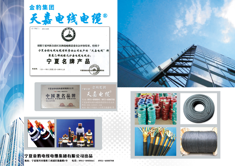 公司信守“以質量求生存,以信譽求發(fā)展”的宗旨,實施嚴格、科學、高效的管理體系,通過了ISO9001:2008質量體系認證,國家強制“CCC”認證,取得了電纜生產的“全國工業(yè)產品生產許可證”,2009年由中國國際名牌發(fā)展協(xié)會和中國品牌企業(yè)聯(lián)合發(fā)展促進會聯(lián)合授予公司“天嘉電線®”“中國著名品牌”的稱號,2011年榮獲“寧夏名牌”稱號。公司是寧夏質量管理協(xié)會副會長單位、銀川市質量管理協(xié)會理事單位、賀蘭縣質量管理協(xié)會理事單位、中國電器工業(yè)協(xié)會電線電纜分會會員單位。