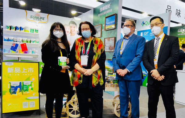 11月6日,新西蘭駐華大使傅恩萊女士、新西蘭貿(mào)發(fā)局大中華區(qū)總裁白安祖先生、新西蘭駐滬總領(lǐng)館總領(lǐng)事黃橋進(jìn)先生,到新西蘭館進(jìn)行視察,并蒞臨生命陽光展位參觀交流,對5年進(jìn)博老朋友的優(yōu)質(zhì)產(chǎn)品表示一如既往的高度認(rèn)可,在看到貿(mào)發(fā)局與中國南方航空聯(lián)合舉辦的“關(guān)愛南航‘新’心相伴”愛心活動相冊時,再度贊揚(yáng)了生命陽光的全程參與和公益支持!