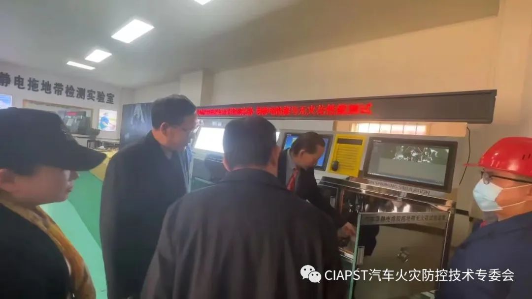 調(diào)研組首先了解企業(yè)的設(shè)立和發(fā)展等相關(guān)工作情況。隨后來到“大映谷實驗室”,觀摩汽車導(dǎo)靜電橡膠拖地帶旋轉(zhuǎn)摩擦試驗過程,對試驗過程未產(chǎn)生火花的復(fù)合金屬材料給予肯定,該項技術(shù)突破行業(yè)技術(shù)瓶頸、解決行業(yè)技術(shù)難題,一定程度上促進(jìn)了產(chǎn)業(yè)的新升級。另外,參觀了機(jī)動車排氣火花熄滅器火花熄滅性能試驗機(jī)、道路運輸危險貨物車輛標(biāo)志燈發(fā)光質(zhì)量試驗裝置。進(jìn)而觀摩考察大映谷汽車火災(zāi)防控裝備新工藝、新技術(shù)、新裝備。王明文介紹:新一輪科技革命和產(chǎn)業(yè)變革深入發(fā)展,物聯(lián)網(wǎng)、大數(shù)據(jù)、人工智能等高科技在消防領(lǐng)域深度集成應(yīng)用,大幅降低消防安全風(fēng)險,有效提升了消防安全監(jiān)測預(yù)警、監(jiān)管執(zhí)法、指揮決策、應(yīng)急救援等能力,為消防工作轉(zhuǎn)型升級聚力賦能。