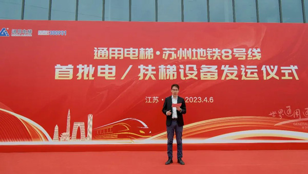 通用電梯蘇州地鐵8號(hào)線項(xiàng)目各執(zhí)行部門均到場(chǎng)參加了發(fā)運(yùn)儀式,執(zhí)行總裁徐斌先生主持了發(fā)運(yùn)儀式并做致辭。