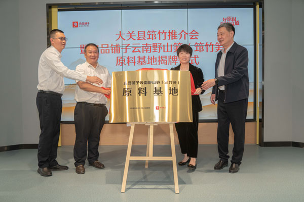 4月26日,中國(guó)食品工業(yè)協(xié)會(huì)副秘書長(zhǎng)徐堅(jiān),中共大關(guān)縣委常委、縣人民政府常務(wù)副縣長(zhǎng)張興,云南省農(nóng)業(yè)科學(xué)院農(nóng)產(chǎn)品加工研究所副所長(zhǎng)蘇火生,良品鋪?zhàn)庸煞萦邢薰靖笨偛?、供?yīng)鏈中心負(fù)責(zé)人劉玲出席“良品鋪?zhàn)釉颇弦吧焦S(筇竹筍)原料基地”揭牌儀式。