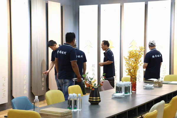 在隆飾精品展廳中,大家興趣十足,依次欣賞著不同系列板材產(chǎn)品所打造的定制家具效果,讓大家更直觀地了解隆飾板材,增加經(jīng)營(yíng)信心,讓經(jīng)銷商對(duì)隆飾產(chǎn)品更加具有信心!