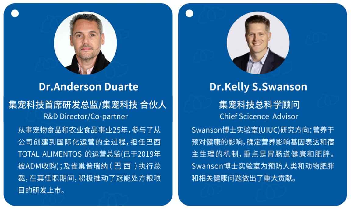 Golden Prince®處方食品能夠落地中國生產離不開他們的鼎力相助,集寵國際董事長王云飛先生隆重介紹集寵的硬核專家組,由Dr.Anderson領導的優(yōu)秀團隊,他擁有幾十年的國際研發(fā)及生產經驗。還有美國伊利諾伊大學(UIUC)Dr.Kelly S.Swanson 領導的動物營養(yǎng)學院的基礎研究支持。