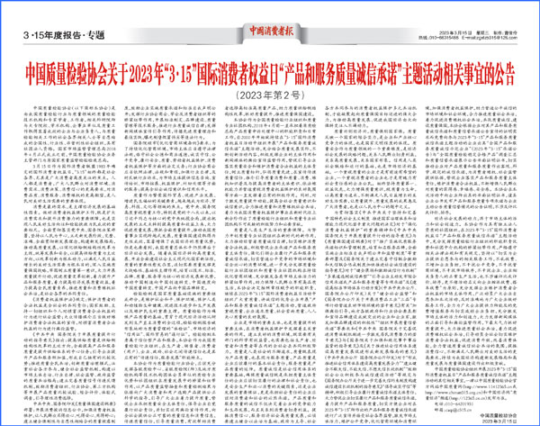 - 中國質(zhì)量報發(fā)布:共筑質(zhì)量誠信 助力放心消費——中國質(zhì)量檢驗協(xié)會組織開展2026年“…(2026-03-20)