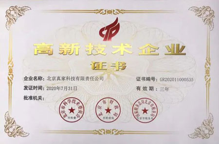 真家科技獲得高新技術(shù)企業(yè)認證后,公司可享受國家多重重大利好,在真家科技在科技探索的道路上具有重大里程碑意義。