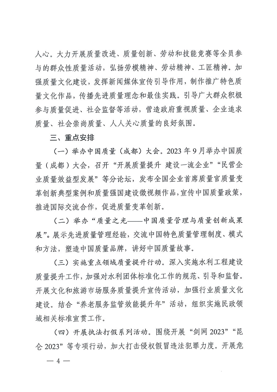 市場監(jiān)管總局聯(lián)合中央宣傳部、最高人民法院、最高人民檢察院、國家發(fā)展改革委、教育部、科技部等25個(gè)部門定于2023年9月聯(lián)合開展全國“質(zhì)量月”活動(dòng)。圍繞“增強(qiáng)質(zhì)量意識(shí) 推進(jìn)高質(zhì)量發(fā)展”的主題,各部門將在質(zhì)量月期間開展多項(xiàng)活動(dòng):中央宣傳部結(jié)合“劍網(wǎng)2023”專項(xiàng)行動(dòng)加大網(wǎng)絡(luò)侵權(quán)盜版打擊力度;最高人民法院將發(fā)布一批食品藥品安全刑事審判典型案例;最高人民檢察院依法懲治侵權(quán)假冒犯罪,開展危害食品藥品安全犯罪案件辦理專題培訓(xùn),發(fā)布知識(shí)產(chǎn)權(quán)檢察綜合保護(hù)指導(dǎo)性案例;工業(yè)和信息化部組織開展全國質(zhì)量標(biāo)桿經(jīng)驗(yàn)交流活動(dòng),舉辦“中國制造”品牌故事大賽;民政部結(jié)合“養(yǎng)老服務(wù)監(jiān)管效能提升年”活動(dòng),組織開展民政領(lǐng)域相關(guān)標(biāo)準(zhǔn)宣貫工作;自然資源部聯(lián)合市場監(jiān)管總局推動(dòng)開展2023年自然資源檢驗(yàn)檢測機(jī)構(gòu)能力驗(yàn)證工作和“雙隨機(jī)、一公開”監(jiān)督檢查工作,開展重要標(biāo)準(zhǔn)宣貫。市場監(jiān)管總局將舉辦限制商品過度包裝宣傳發(fā)布活動(dòng),開展“計(jì)量服務(wù)中小企業(yè)行”,組織“全國檢驗(yàn)檢測機(jī)構(gòu)開放日”活動(dòng),圍繞綠色產(chǎn)品認(rèn)證、有機(jī)產(chǎn)品認(rèn)證開展相關(guān)宣傳周活動(dòng)。