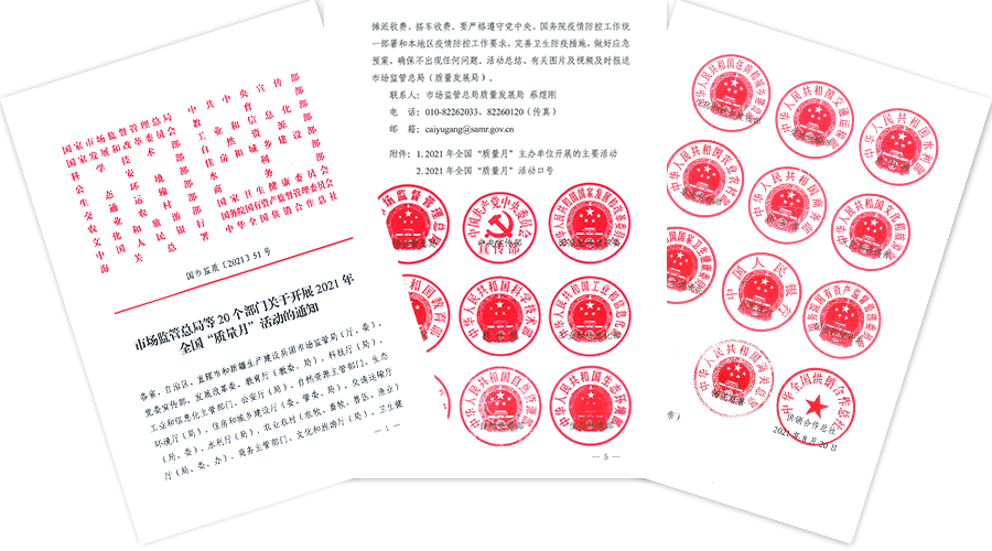 日前,市場監(jiān)管總局、中央宣傳部、國家發(fā)展改革委等20個部門聯(lián)合印發(fā)《市場監(jiān)管總局等20個部門關(guān)于開展2021年全國“質(zhì)量月”活動的通知》(國市監(jiān)質(zhì)〔2021〕51號),對2021年全國“質(zhì)量月”“開展質(zhì)量主題宣傳,倡導質(zhì)量第一意識”“深入實施質(zhì)量提升行動,努力提高產(chǎn)品和服務質(zhì)量”“加強質(zhì)量文化建設,推進實施全面質(zhì)量管理”“夯實質(zhì)量基礎設施,增強質(zhì)量服務效能”“強化質(zhì)量安全監(jiān)管,營造良好消費環(huán)境”等活動內(nèi)容進行部署,并要求“發(fā)揮‘質(zhì)量月’活動的平臺影響力,推動各級黨委、政府加強對質(zhì)量工作的領(lǐng)導,充分發(fā)揮企業(yè)的主體作用和消費者組織、行業(yè)協(xié)會的橋梁紐帶作用,推動全社會質(zhì)量共治”。